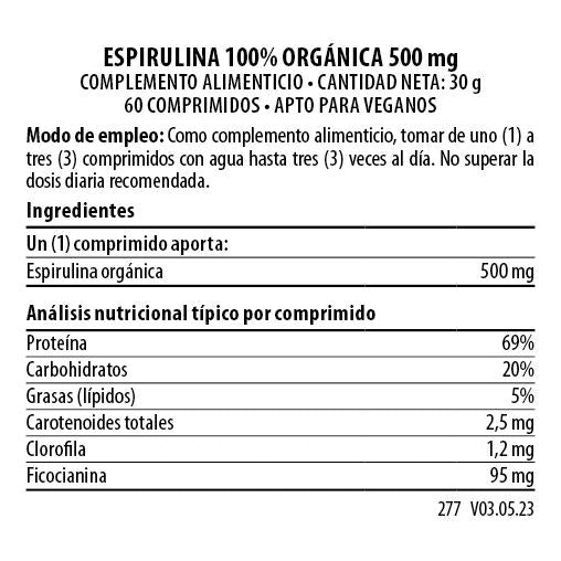 Toda la información sobre "100% Espirulina Orgánica 500 mg 60 cápsulas"
