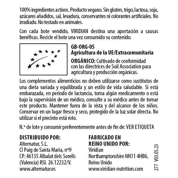 100% ingredientes activos. Apto para veganos. Kosher. Sin gluten, trigo, lactosa, soja, azúcares añadidos, sal, levadura, conservantes ni colorantes artificiales. No irradiado. No testado en animales.