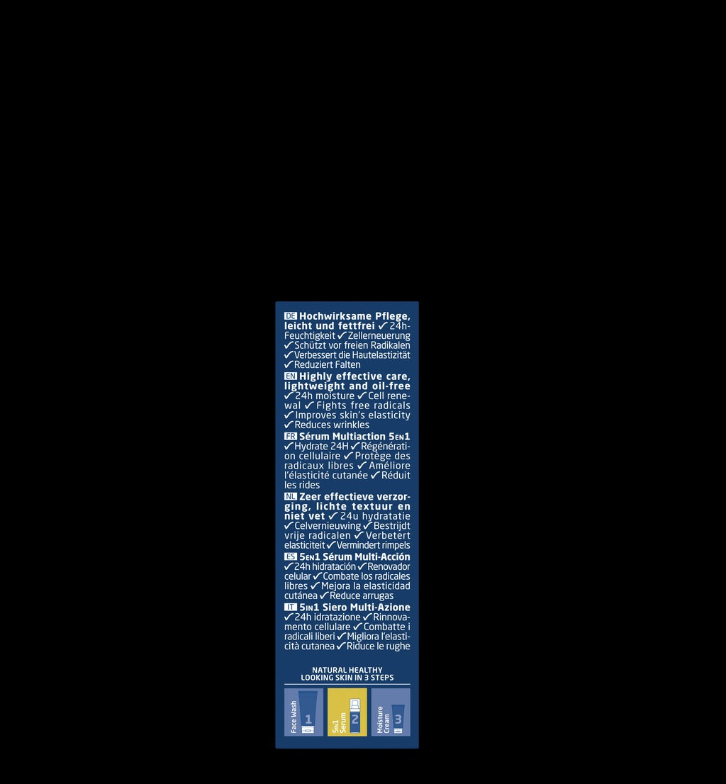 Ayuda a reducir los signos del envejecimiento. Este sérum facial, ligero y sin aceites, proporciona una hidratación 5 en 1 durante 24 horas, estimula la renovación celular, combate los radicales libres, mejora la elasticidad y reduce las arrugas.