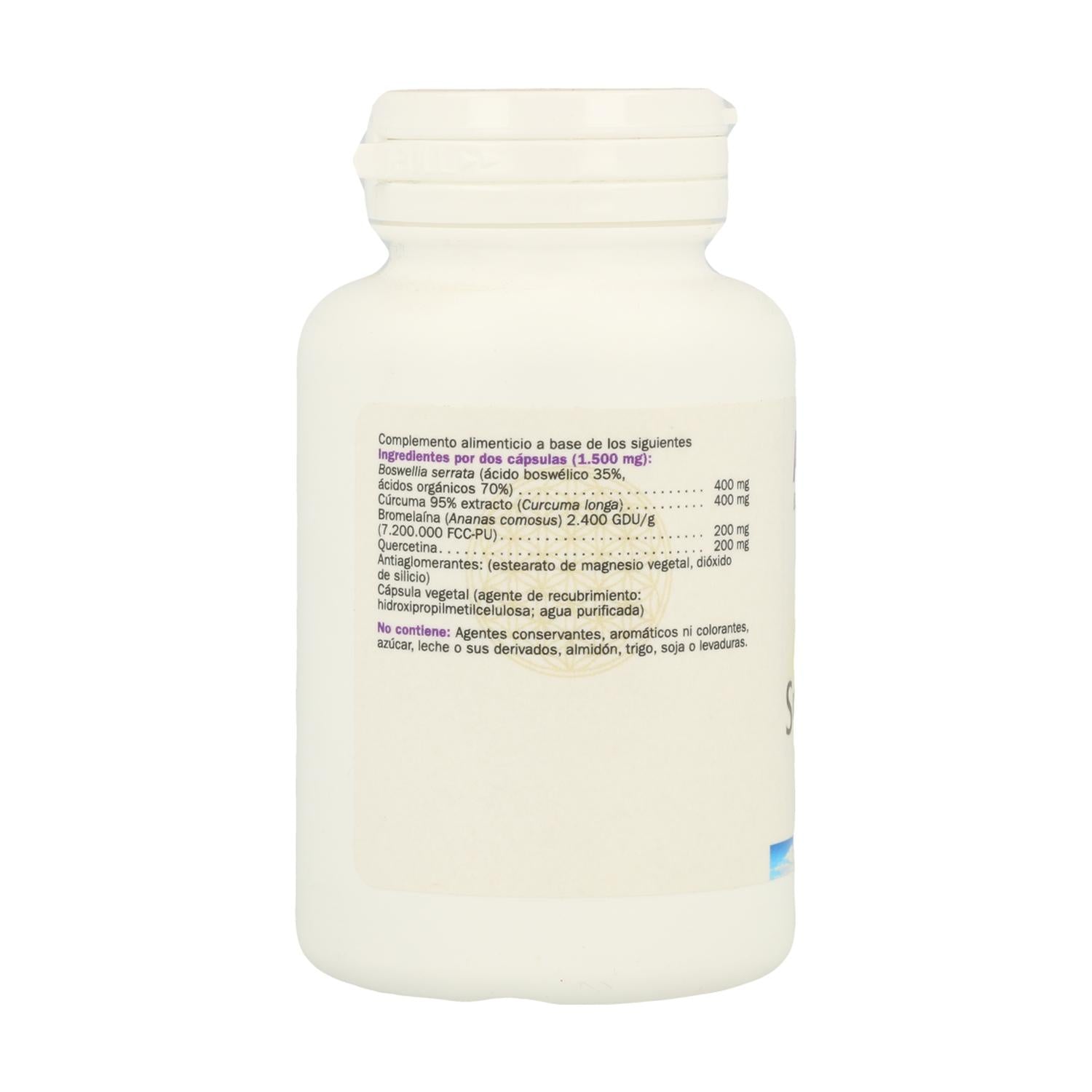 Extracto de resina de Boswellia serrata, extracto de raíz de cúrcuma (Curcuma longa), bromelina (de Ananas comosus), quercetina, antiaglomerantes (estearato de magnesio vegetal y dióxido de silicio), cápsula vegetal (agente de recubrimiento: hidroxipropilmetilcelulosa; humectante: agua purificada).