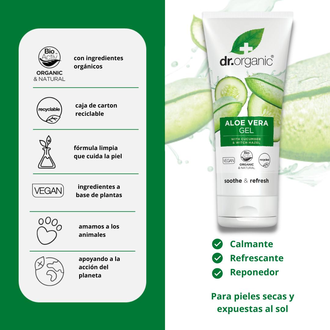 Toda la información sobre "Aloe Vera Gel con pepino, avellana y calendula Dr. Organic 200ml"