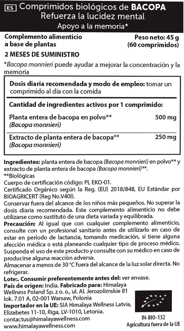Toda la información sobre "Bacopa Organic, Himalaya, 60 cápsulas"