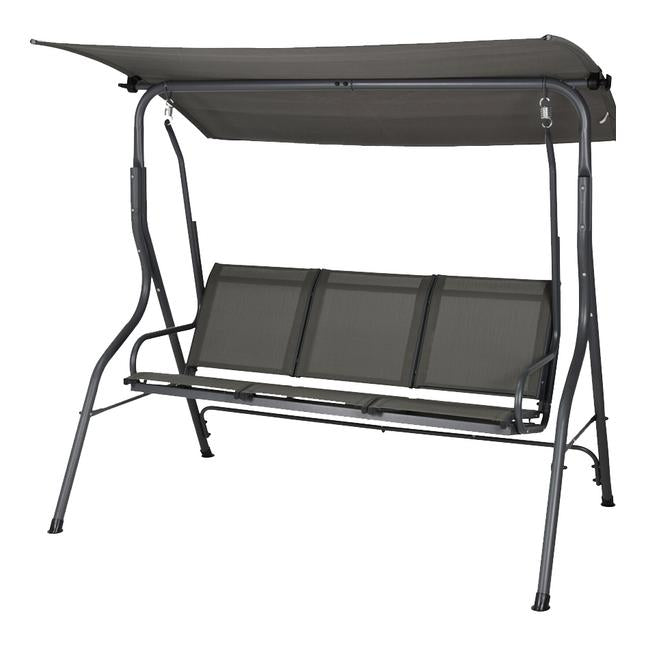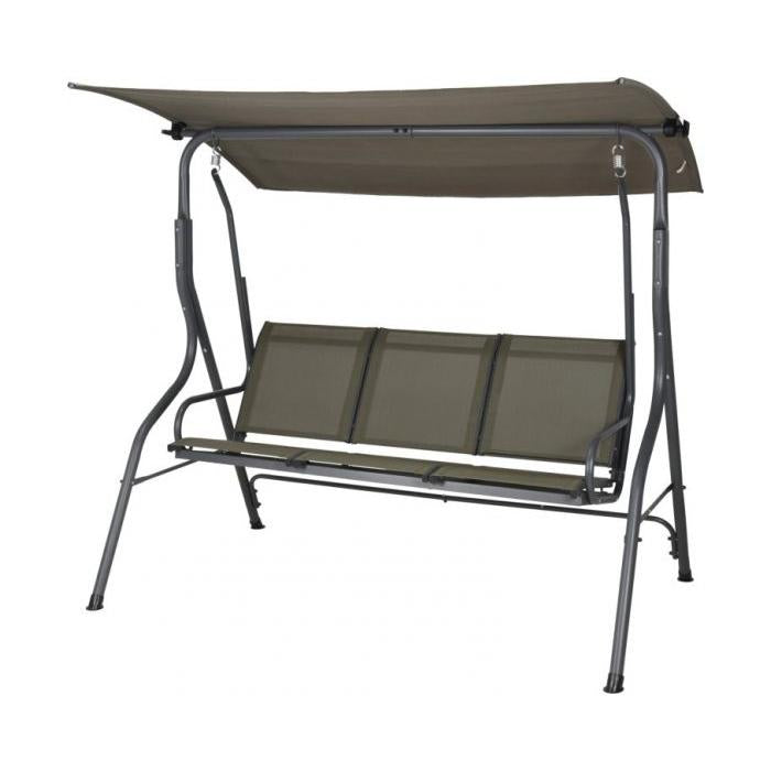 Banco balancín de tres plazas con techo.