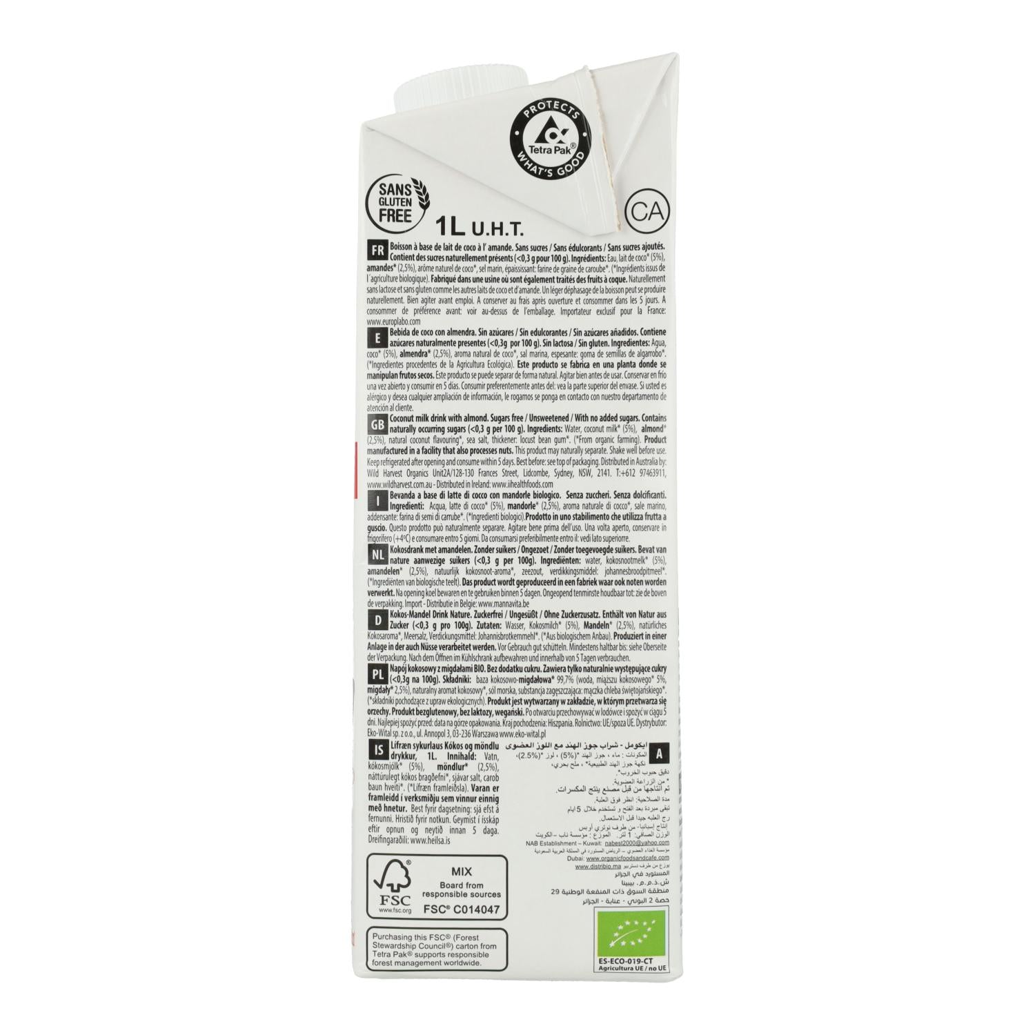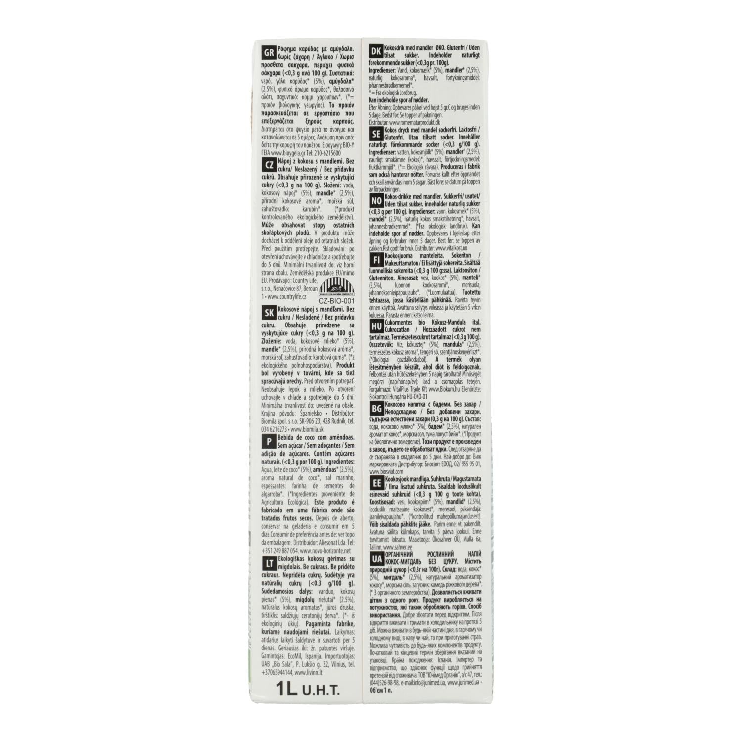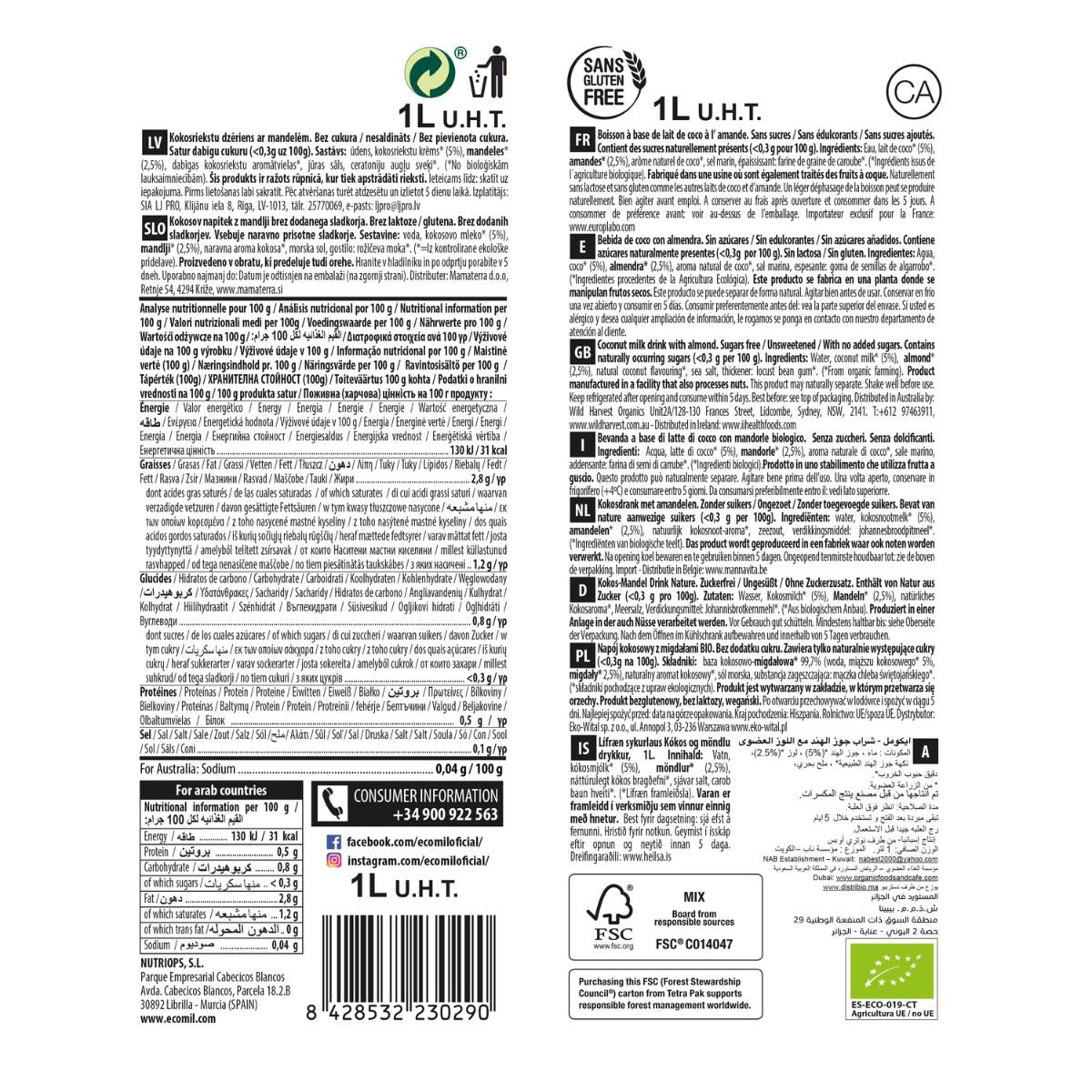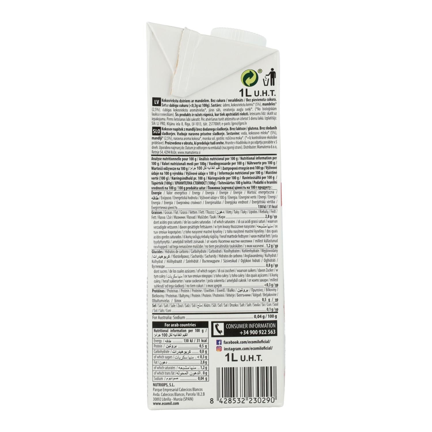 Toda la información sobre "Bebida Coco y Almendra sin azúcar Ecomil 1L"