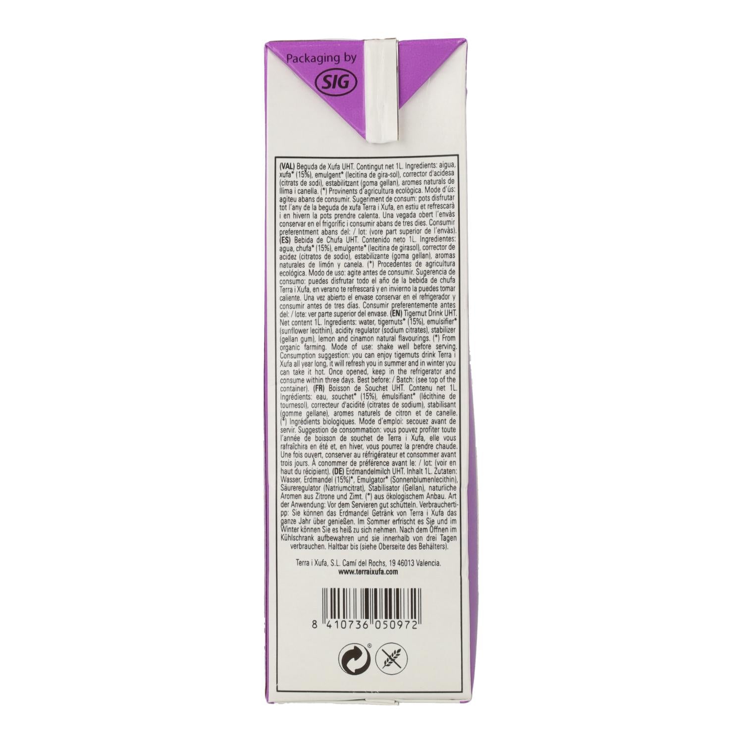 Toda la información sobre "Bebida de Chufa sin azúcar Terra i Xufa 1L"
