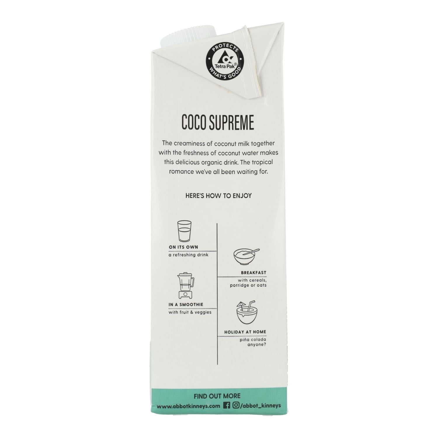 Toda la información sobre "Bebida vegetal coco supreme Bio Abbot Kinney 1L"