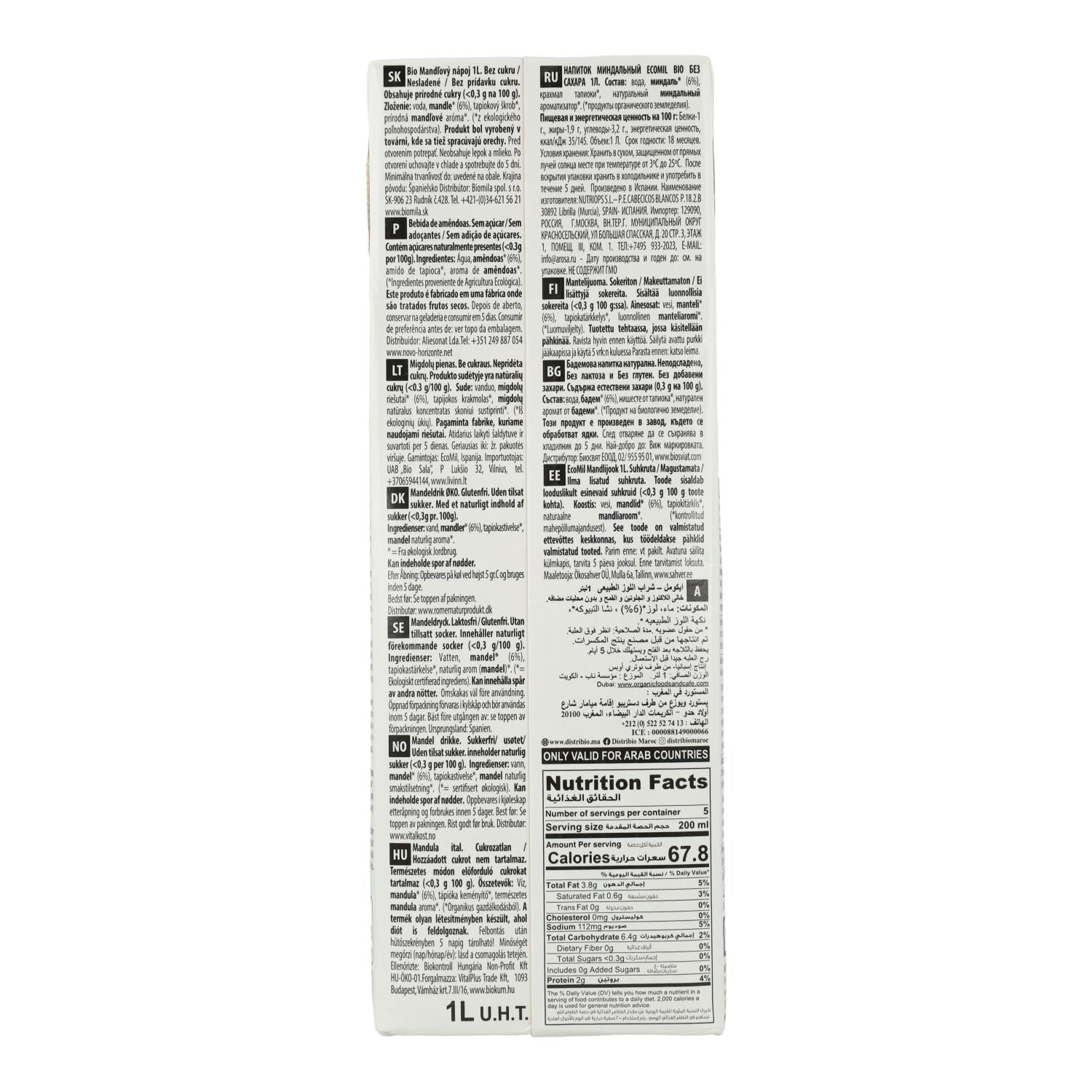 Toda la información sobre "Bebida Vegetal de Almendra Natural sin azúcar BIO Ecomil 1 L"