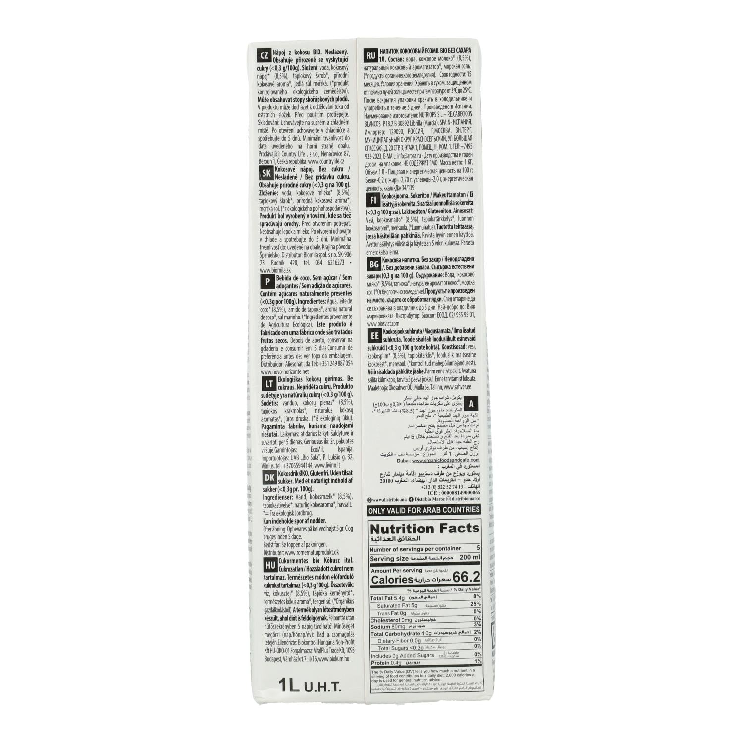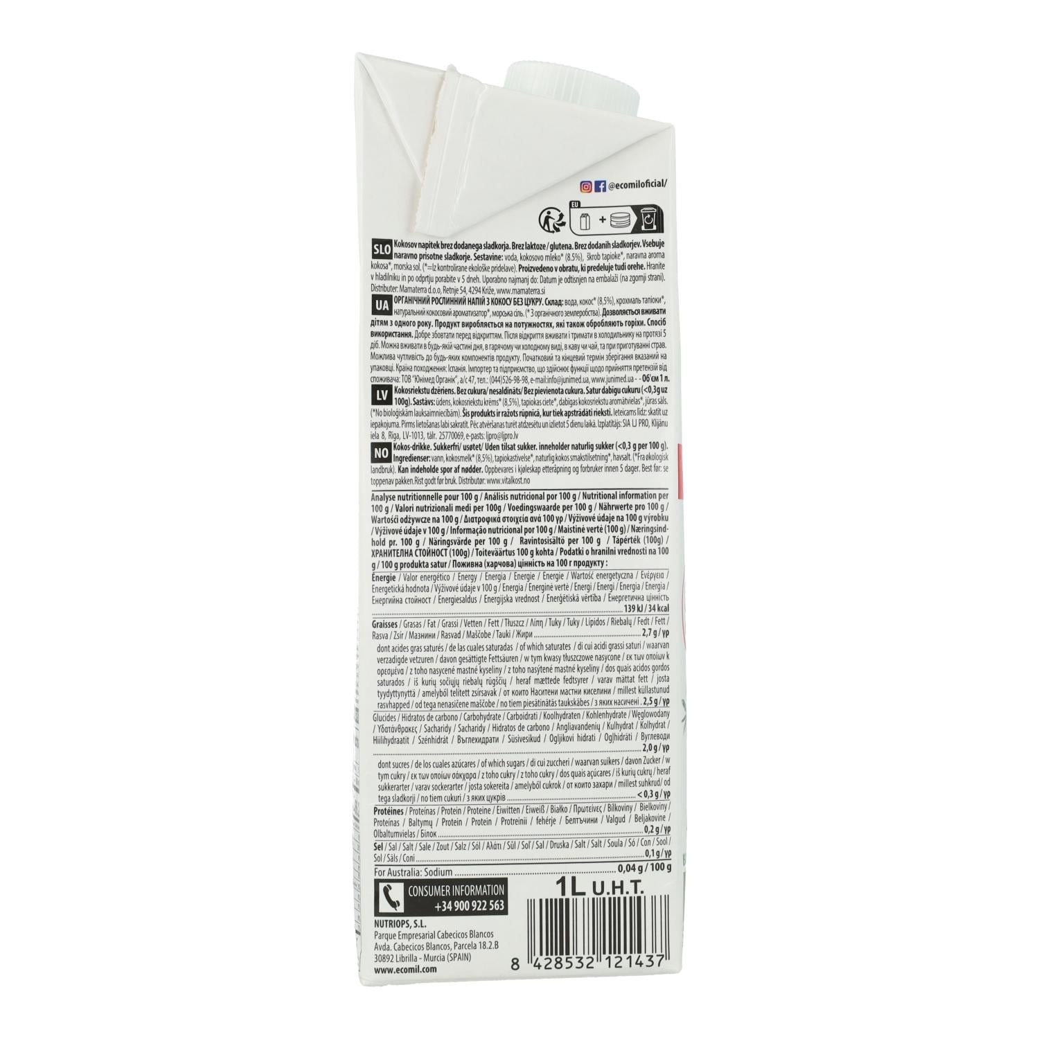 Toda la información sobre "Bebida vegetal de coco Ecomil 1L"
