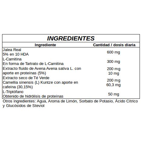 Advertencias: No superar la dosis diaria expresamente recomendada; Los complementos alimenticios no deben utilizarse como sustituto de una dieta equilibrada; Mantener fuera del alcance de los niños más pequeños. Conservar en un lugar fresco y seco.