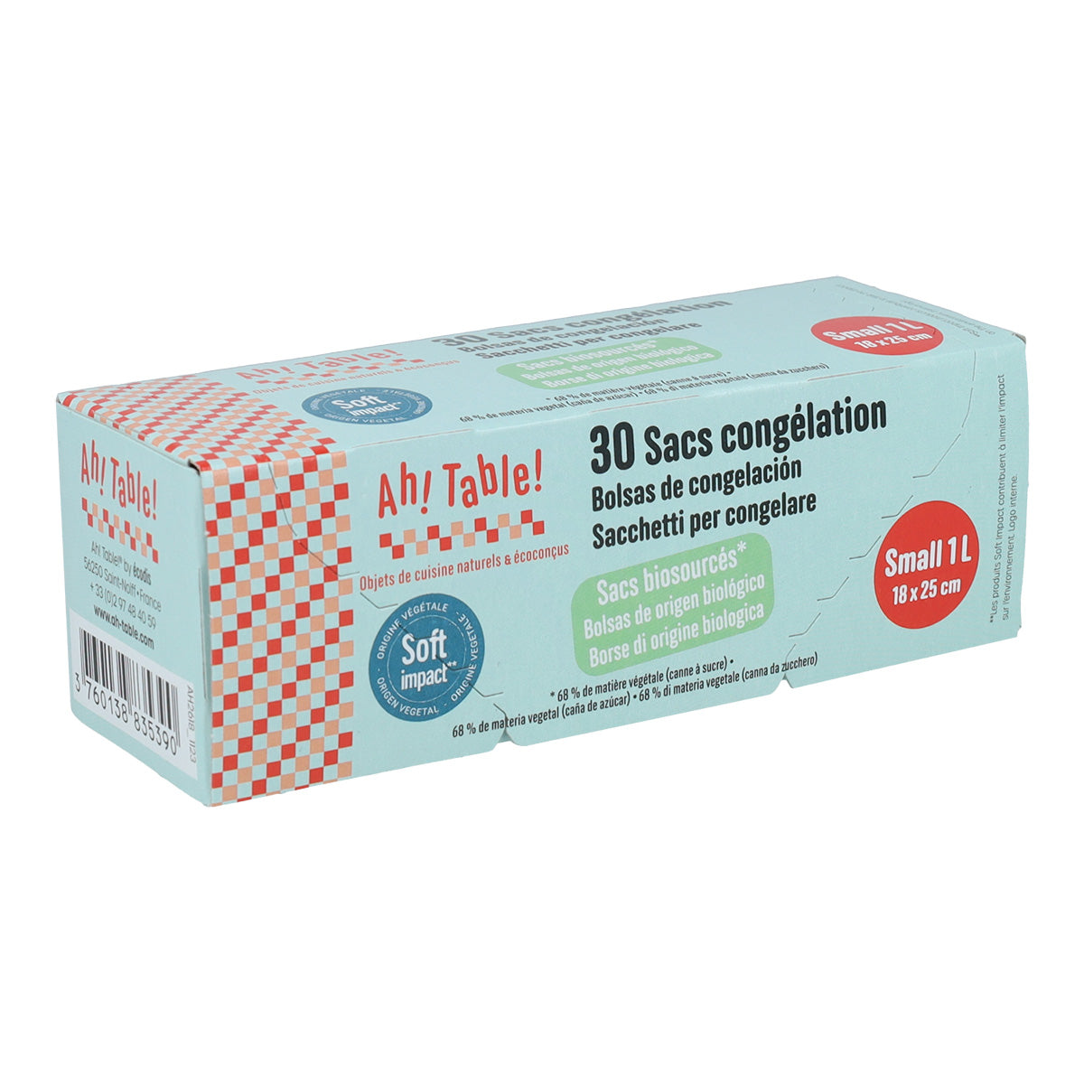Este nuevo material permite reducir las emisiones de dióxido de carbono en más de un 70% con respecto a las bolsas de congelación hechas a partir de petróleo. Sin ftalatos ni bisfenol.