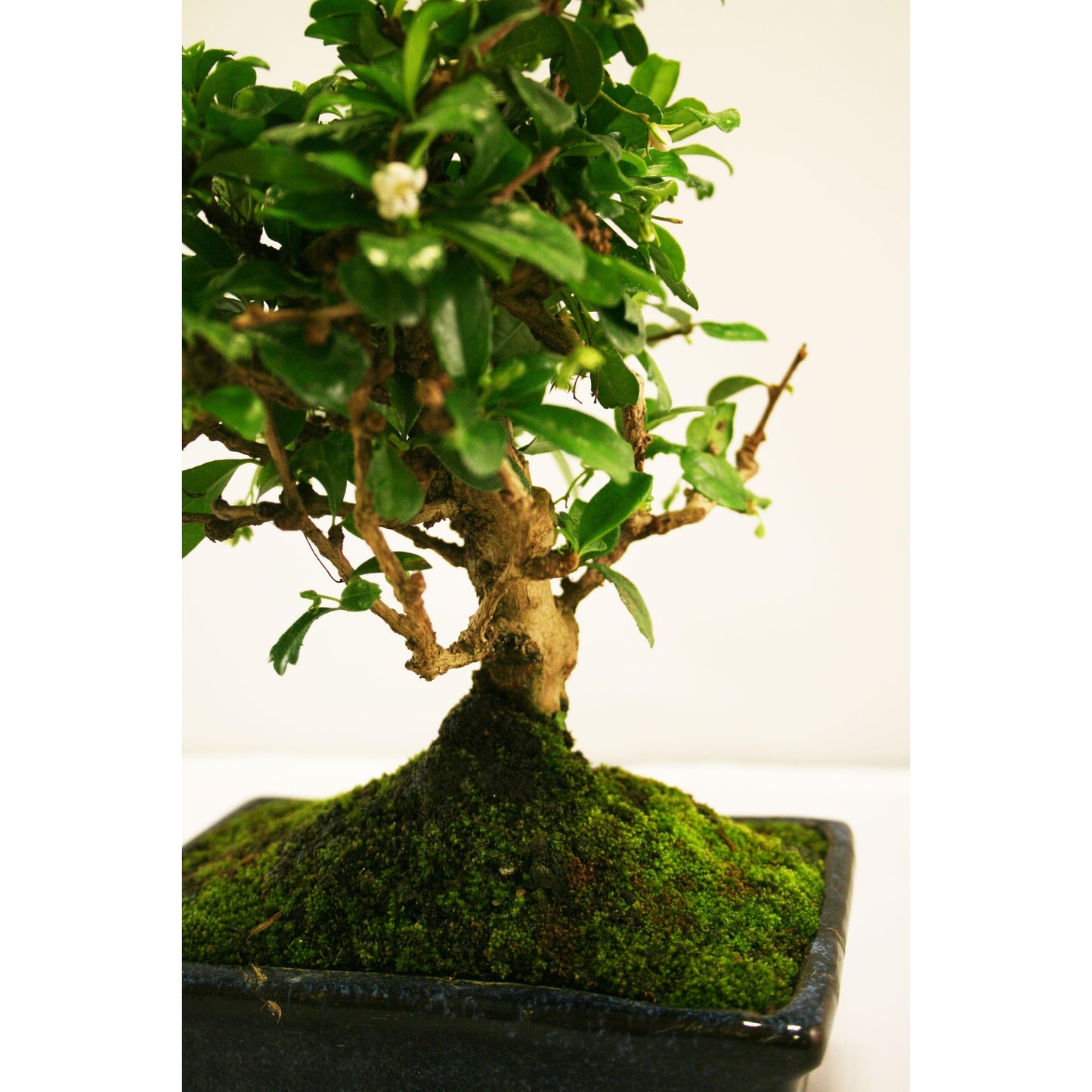 *Algunas plantas que poseen flores y/o frutos pueden no exhibirlos en el momento de la compra debido a que la floración, producción de frutos e incluso la caída de hojas siguen un ciclo estacional. En consecuencia, es posible que al adquirir la planta, esta no se encuentre en un período de brotación, floración o fructificación, lo cual no debe interpretarse como un defecto o carencia en la planta. Recuerde que un bonsái es un ser vivo, y por tanto las imágenes que aparecen representan el artículo pero no es exactamente la del artículo que recibirá.