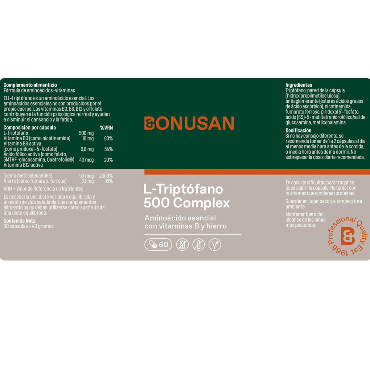 Toda la información sobre "Bonusan L-Triptófano 500 mg plus 60 cápsulas"