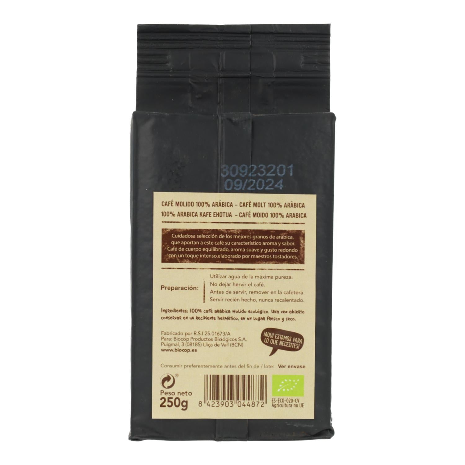 Café Molido 100% Arábica Bio Biocop 250 g