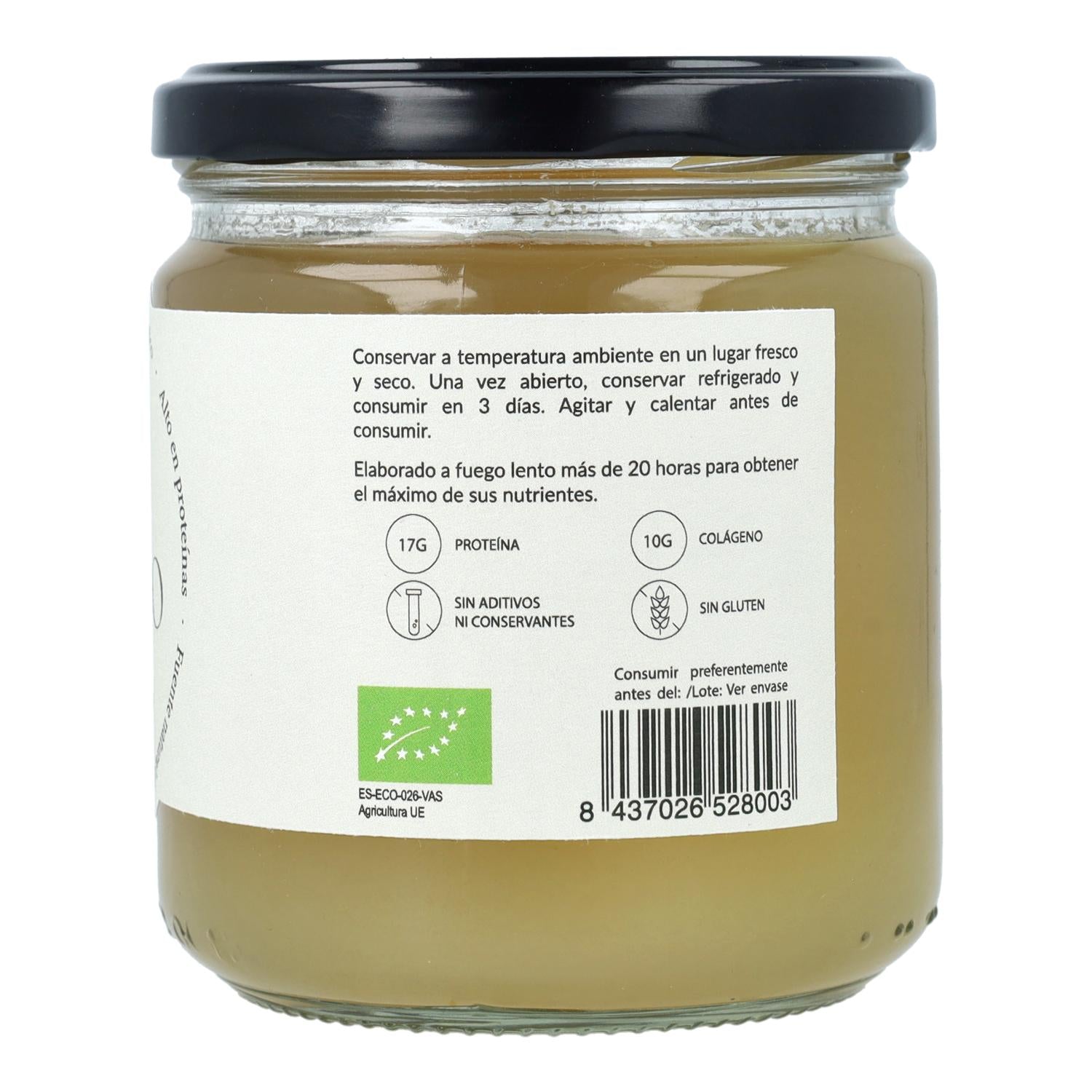 Elaborado a partir de huesos de animales seleccionados, agua y condimentos naturales. No contiene aditivos ni conservantes artificiales.