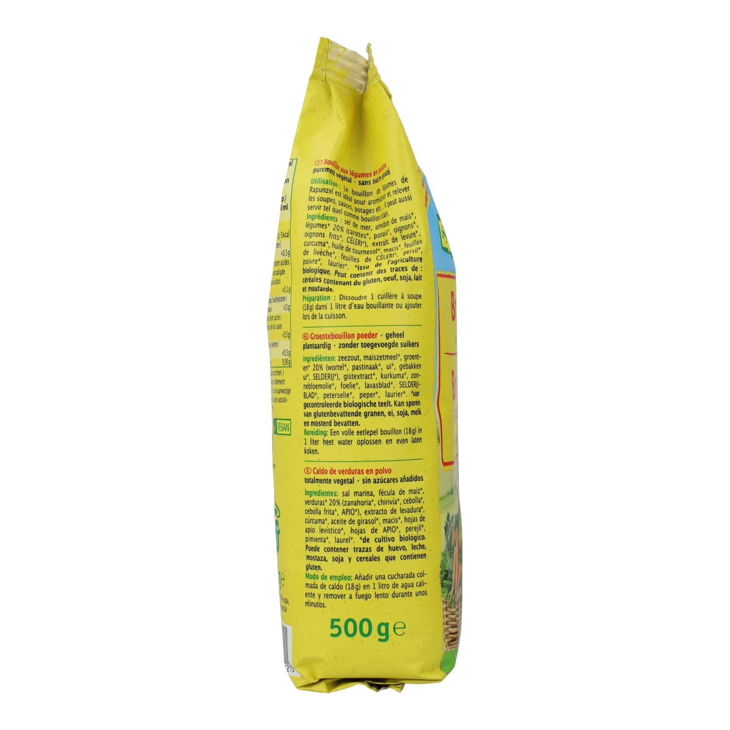 Bolsa de 500 g de polvo de caldo vegetal.