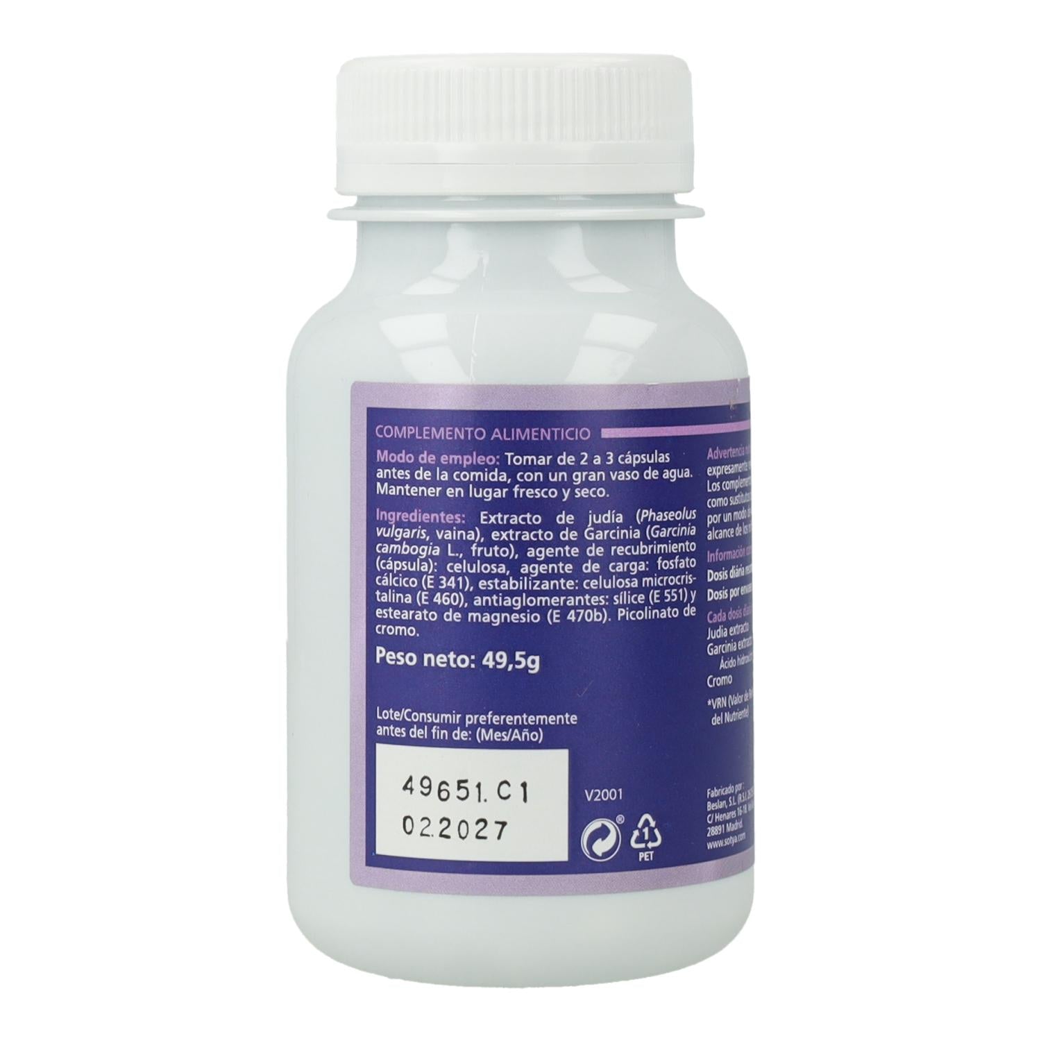 Contiene Phaseolus vulgaris es una leguminosa rica en faseolamina, proteína que actúa impidiendo la absorción de carbohidratos, neutralizando la alfa-amilasa, enzima responsable de la asimilación de hidratos de carbono, como pastas, pan, arroz, galletas... Una ingesta de 380mg dos veces al día antes de comidas ricas en carbohidratos, inhibirá buena parte de las calorías procedentes de éstos. EL segundo componente es la ya conocida Garcinia Cambodia, que se emplea en dietas de control de peso. Sus principios activos, lo ácidos hidroxicítricos (A.H.C.), presentes en la piel, actúan inhibiendo la enzima responsable de la conversión de los azúcares en grasas, principalmente triglicéridos y lipoproteínas “malas” o de baja densidad (LDL) De este modo, la garcinia ralentiza la producción de grasa, con lo que se controlan los depósitos de grasa y, manteniendo un nivel constante de azúcar en sangre, se controla también el apetito. Los A.H.C. producen sensación de saciedad y ayudan a nuestro metabolismo a “quemar” mejor las grasas. El resultado de esta combinación resulta en una mayor inapetencia por los hidratos de carbono y en una menor absorción de los mismos.