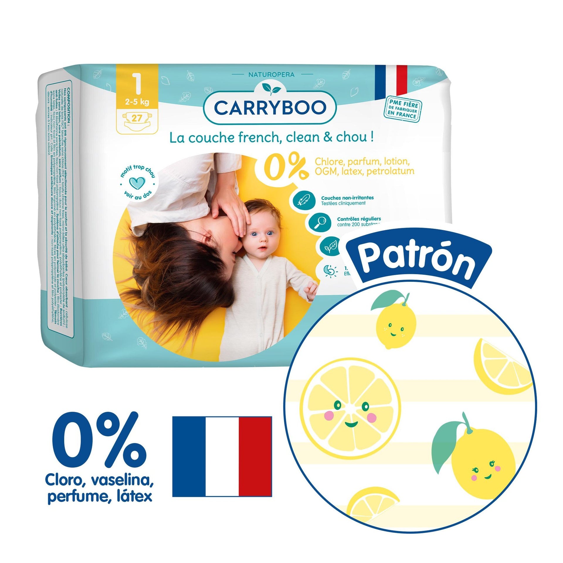 Toda la información sobre "CARRYBOO - Pañales Ecológicos T1 (2-5kg) - Single 27 pañales"