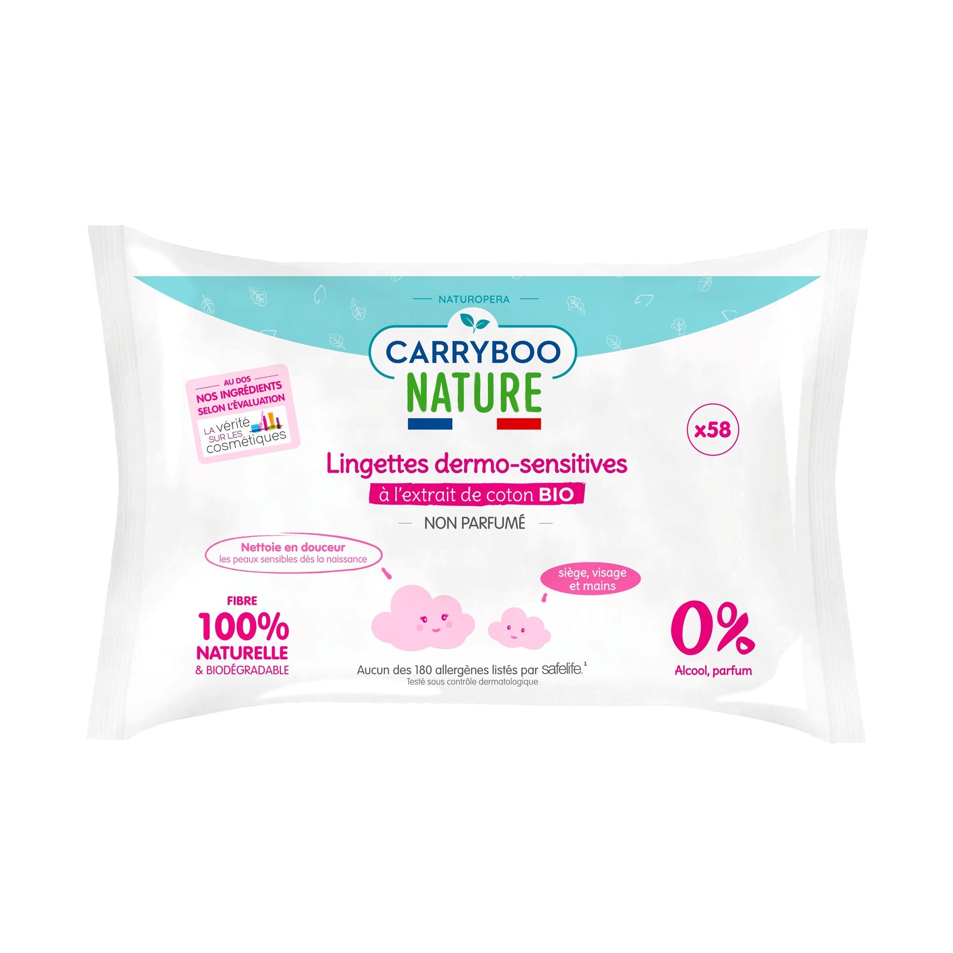 Toda la información sobre "CARRYBOO - Toallitas Dermo-Sensitives con extracto de algodón orgánico - Paquete de 58"