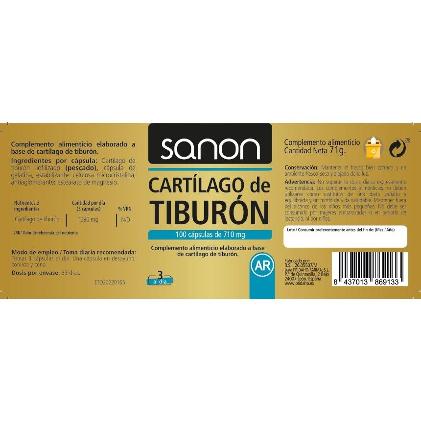 Cartílago de Tiburón 100 cápsulas SANON de 710 mg