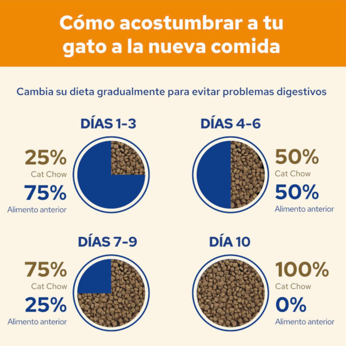 Introduzca Purina Cat Chow gradualmente durante 7 días.
