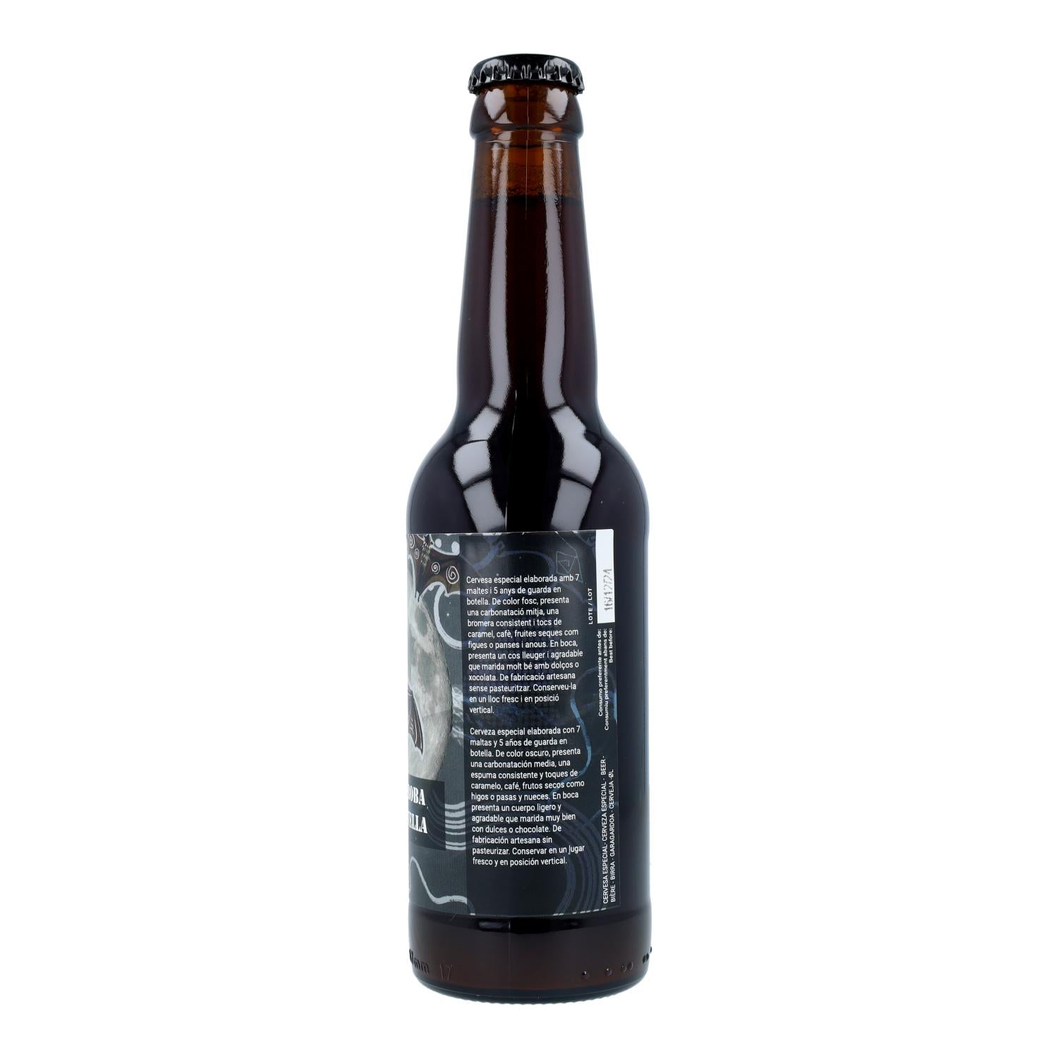 Cerveza especial elaborada con 7 maltas y 5 años de guarda en botella. Con espuma consistente y toques de caramelo, café, frutos secos, tiene cuerpo ligero y marida muy bien con dulces y chocolate. Alc.6,7%vol