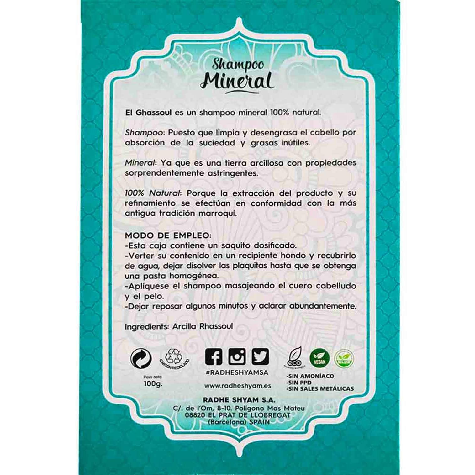 Toda la información sobre "Champú Mineral Ghassoul Rhassoul Rhade Shyam 100 g"