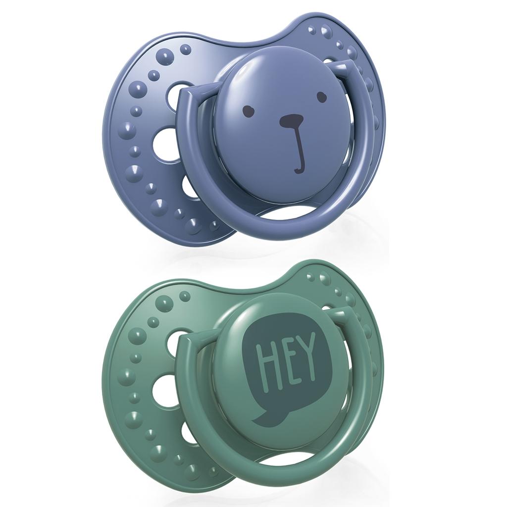 Chupetes dinámicos LOVI Hey azul/verde (2 ud.) 6-18 meses