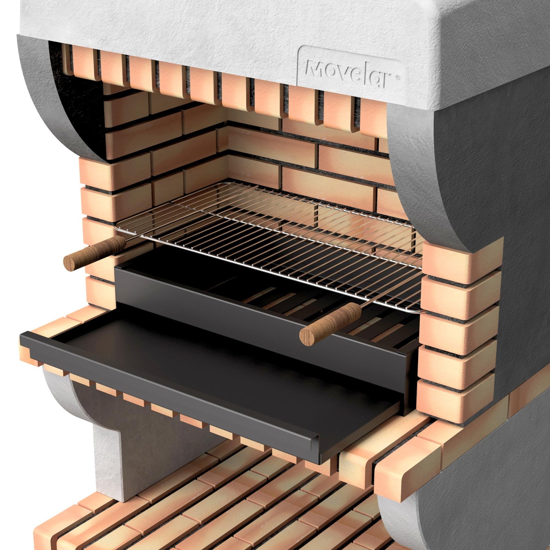 - Barbacoa de hormigón gris refractario y ladrillo naranja claro.
