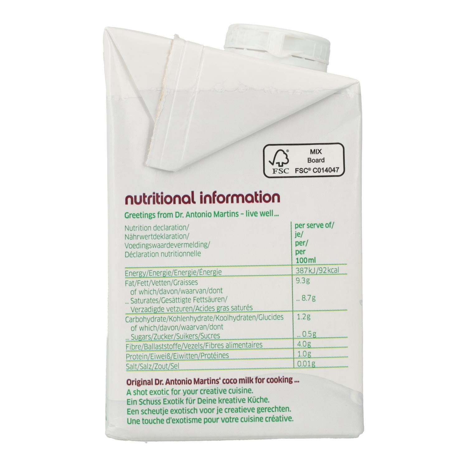 Toda la información sobre "Coco Milk crema para cocinar BIO Dr. Antonio Martins 500 ml"