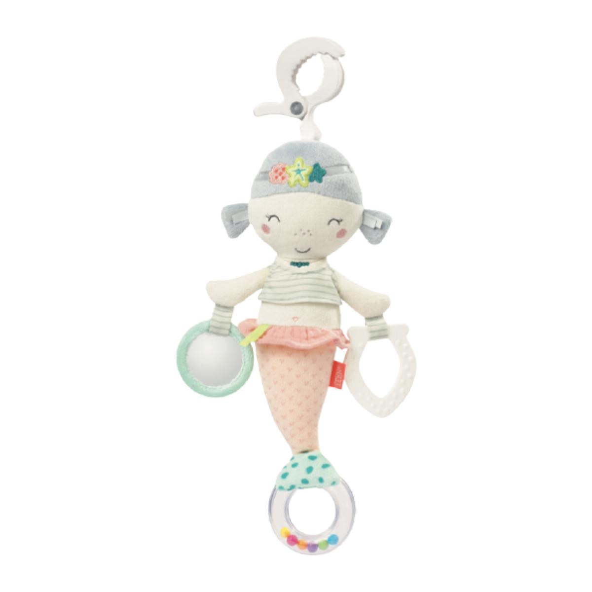 - El bebé puede descubrirse juguetonamente en el pequeño espejo y crea ruidos divertidos con el sonajero de perlas y la campana en la criatura marina.