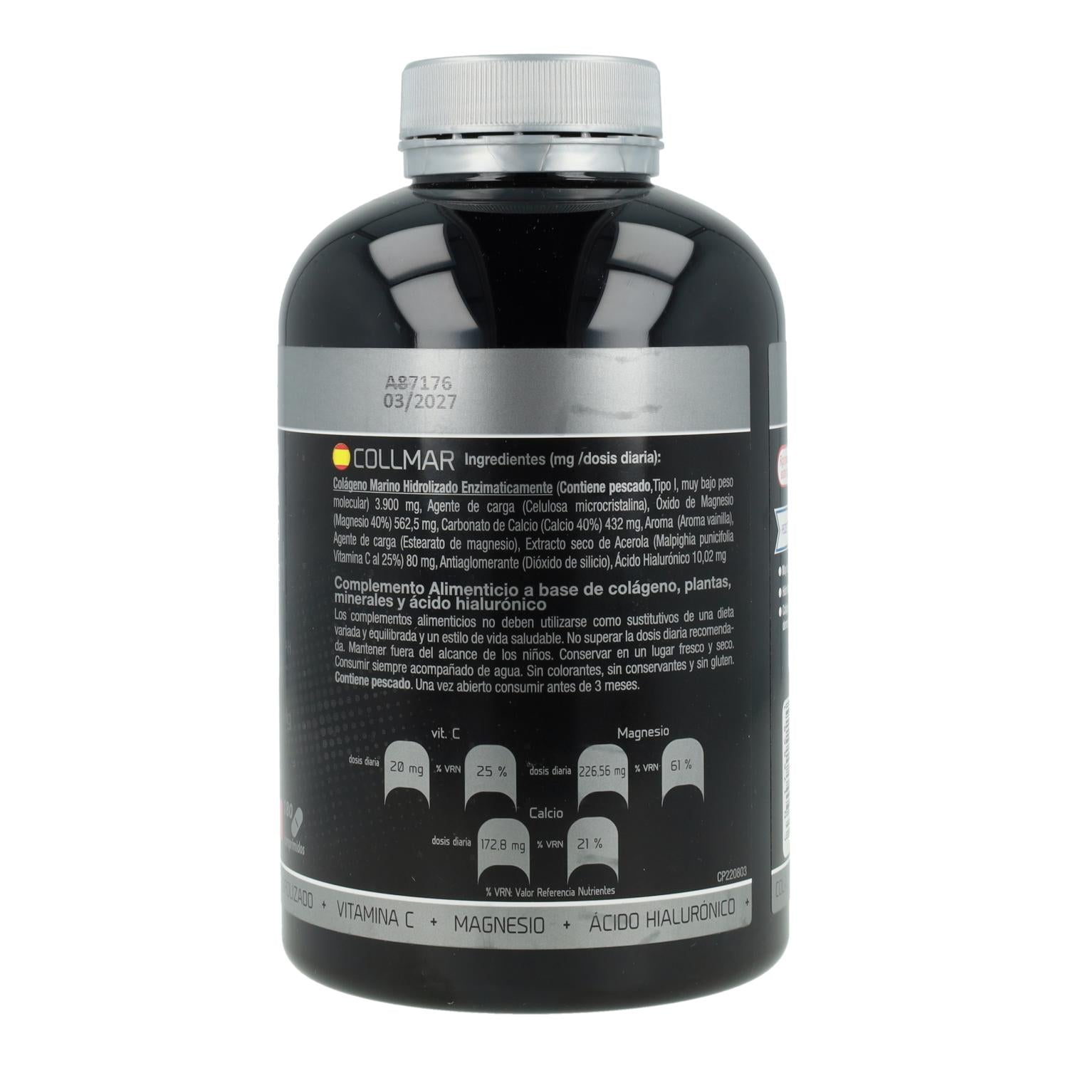 - Los comprimidos de Collmar incorporan en su composición Colágeno marino hidrolizado enzimáticamente, ácido hialurónico, magnesio, calcio y Vitamina C. Gracias a la presencia de Vitamina C, Collmar con magnesio, contribuye a la formación normal de colágeno, para el funcionamiento normal de cartílagos, huesos y piel.