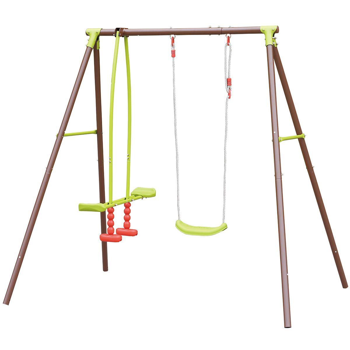 Columpio y balancín de acero marrón y verde Malo Soulet