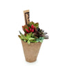 Composición realizada con esquejes de plantas crasas de diferentes variedades y colores en una maceta de fibra de madera.