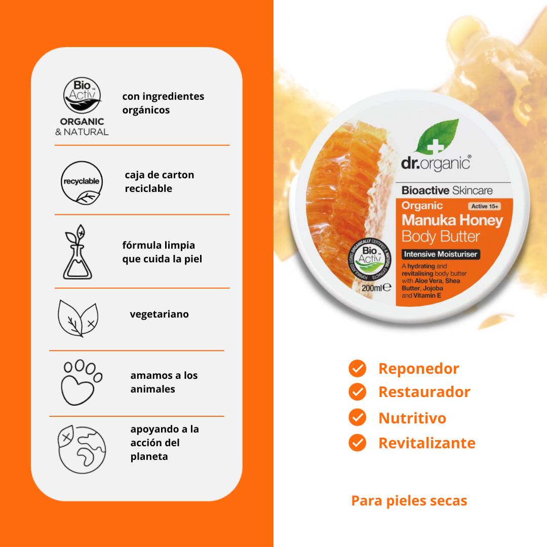Toda la información sobre "Crema corporal Miel de Manuka Dr. Organic, 200ml"