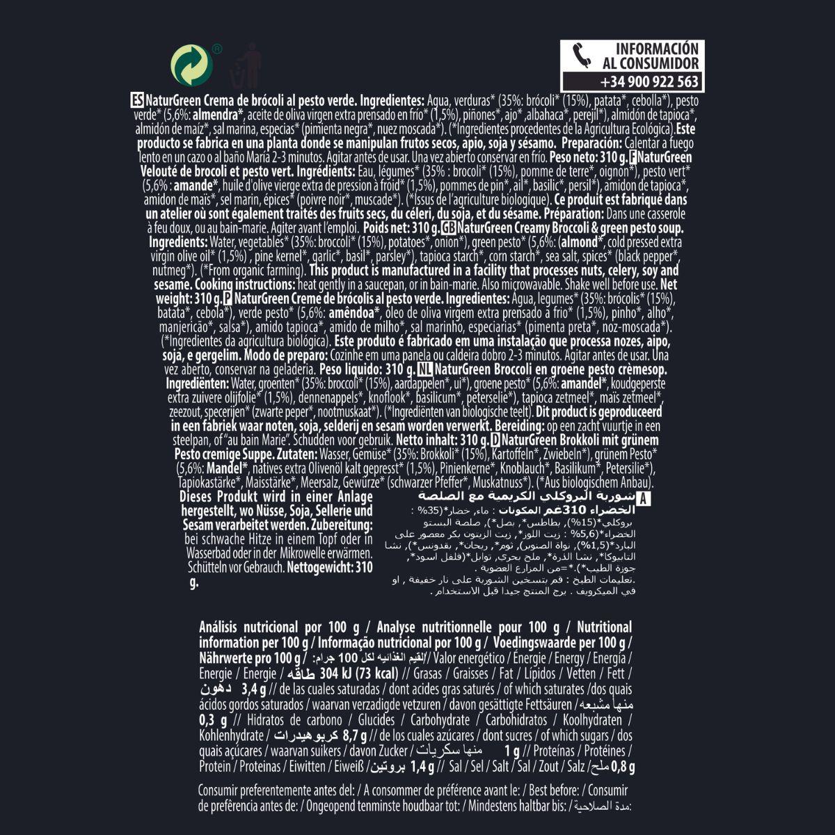 Toda la información sobre "Crema de Brocoli al pesto verde Naturgreen, 310 g"