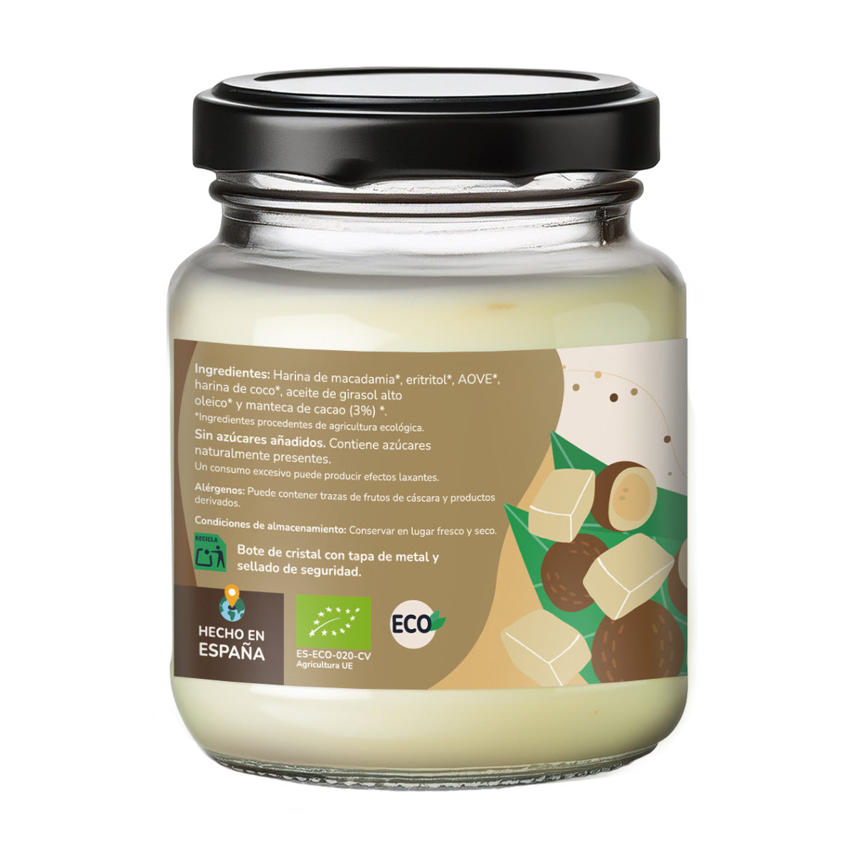 Crema de chocolate blanco y macadamia ecológica