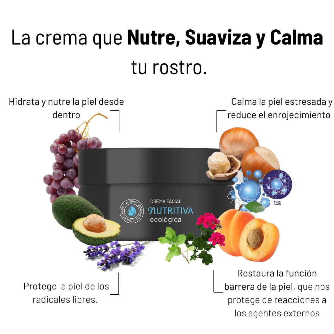 La crema facial NUTRITIVA ayuda a restaurar la protección cutánea natural, proporcionando hidratación y suavidad a la piel mientras la nutre para prevenir el envejecimiento prematuro. Su exclusiva fórmula ECOLÓGICA ha sido diseñadas a base Activos Botánicos Concentrados con reconocidas propiedades dermoprotectoras, nutritivas, antioxidantes y calmantes. La potente sinergia entre sus componentes multiplica su efectividad.