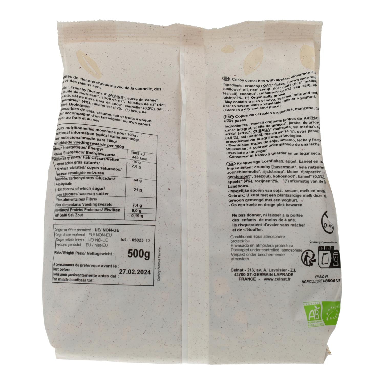 Toda la información sobre "Crunchy Manzana y Canela Celnat 500g"