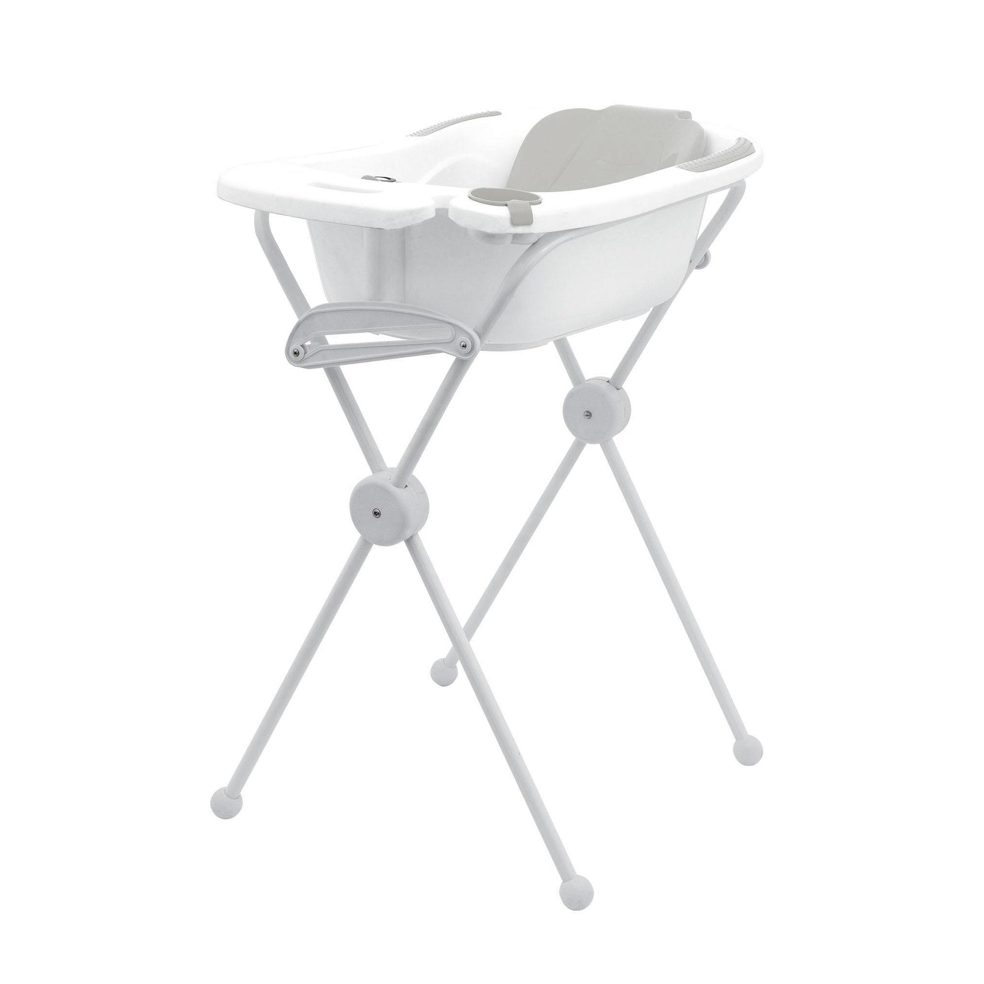 - Compuesta por compartimento para los productos de higiene, un cazo para lavar la cabeza del bebé, un hamaca anatómica con ventosas antideslizantes que se puede extraer y un termómetro para calcular la temperatura del agua.