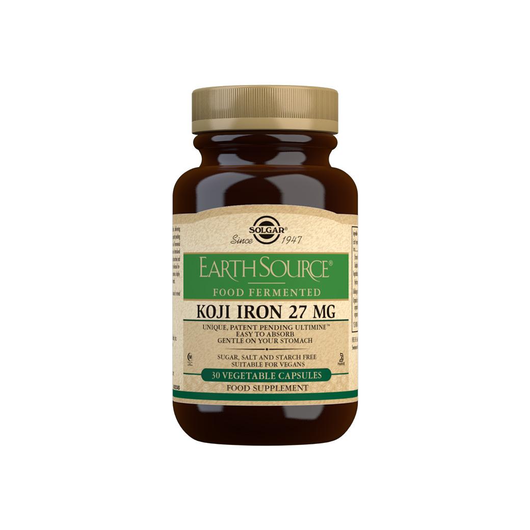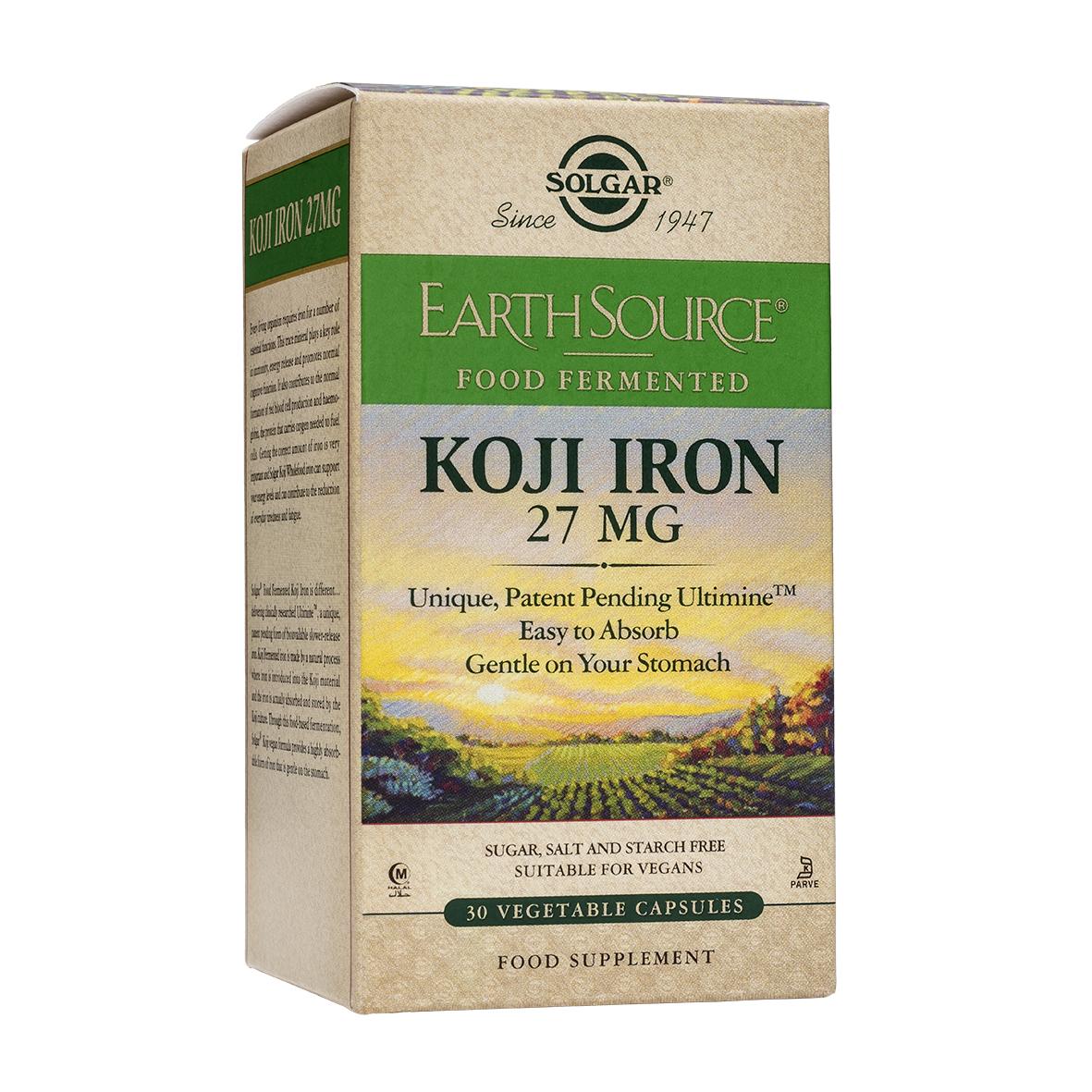El Earth Source® Food Fermented Koji Iron de Solgar® contiene 27 mg de hierro ubicado dentro del Koji a través de un proceso de fermentación natural. Fuertemente ligado a la cultura japonesa durante más de 2.000 años, el Koji se ha utilizado durante mucho tiempo en la producción de "grano cultivado", se deriva de un cultivo iniciador cultivado en arroz. A medida que el Koji madura y fermenta, el hierro se introduce en la mezcla y se almacena naturalmente dentro de las células del cultivo de Koji. Posteriormente, se recolecta para proporcionar una fuente de hierro suave y enriquecida.