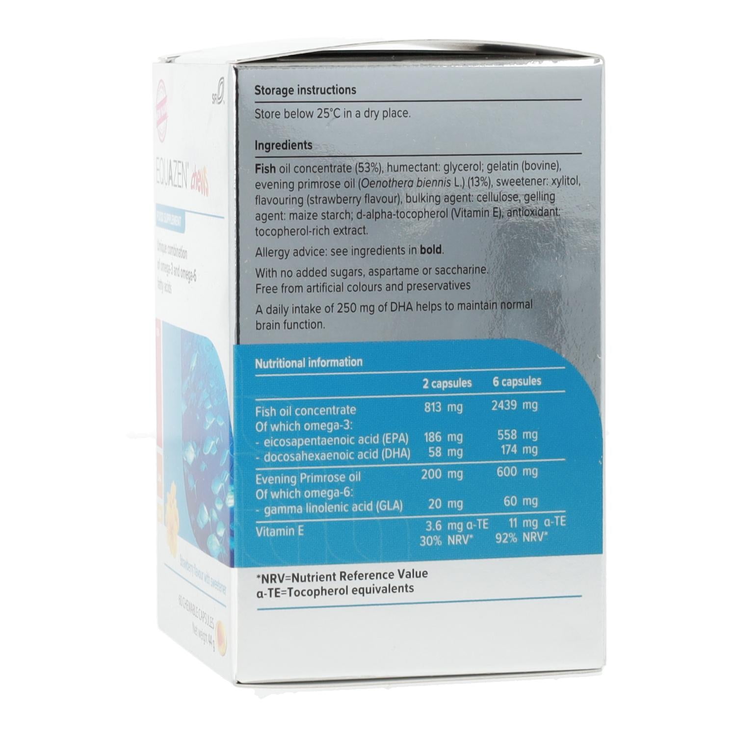 Equazen es un complemento alimenticio a base de aceites Omega 3 (origen marino) y Omega 6 (origen vegetal). Aporta las proporciones adecuadas de EPA, DHA y GLA, que ayudan a favorecer el desarrollo intelectual, el funcionamiento del cerebro y la conexión neuronal.