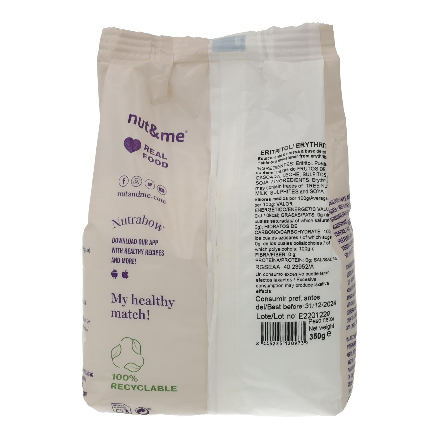 El eritritol es un edulcorante natural saludable, se usa como alternativa saludable al azúcar con un 70% de dulzor y con 0 calorías. El eritritol se obtiene del proceso de fermentación de glucosa extraída del almidón de maíz o trigo por la acción de la levadura.