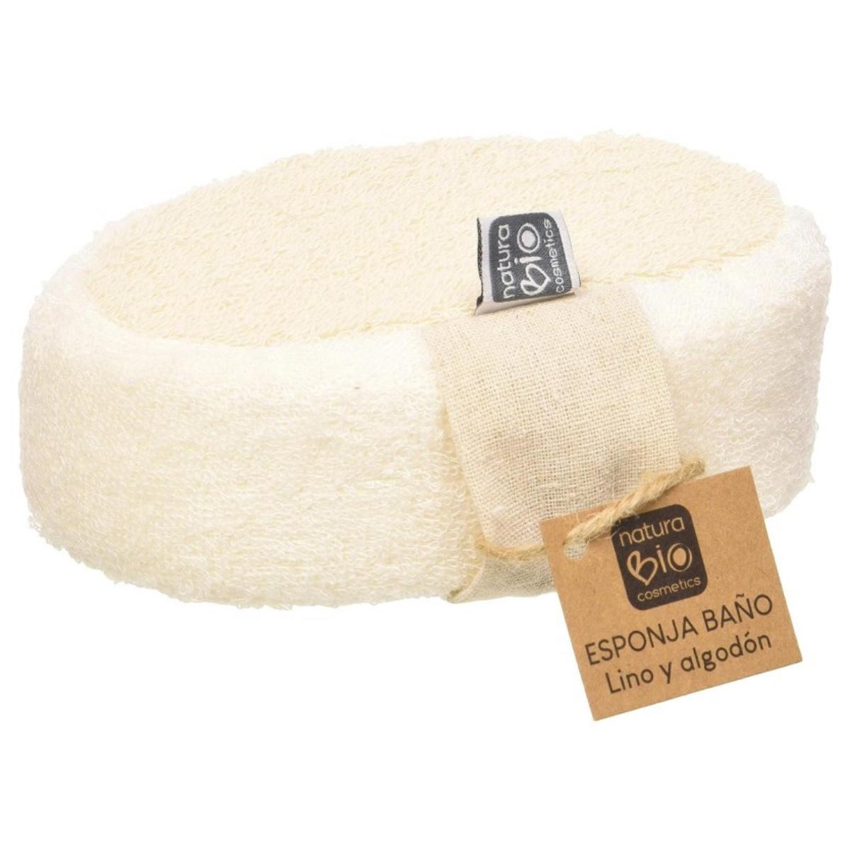 Esponja de lino y algodón con fibra de sisal, ayuda a activar la circulación y a exfoliar la piel dejándola más suave.