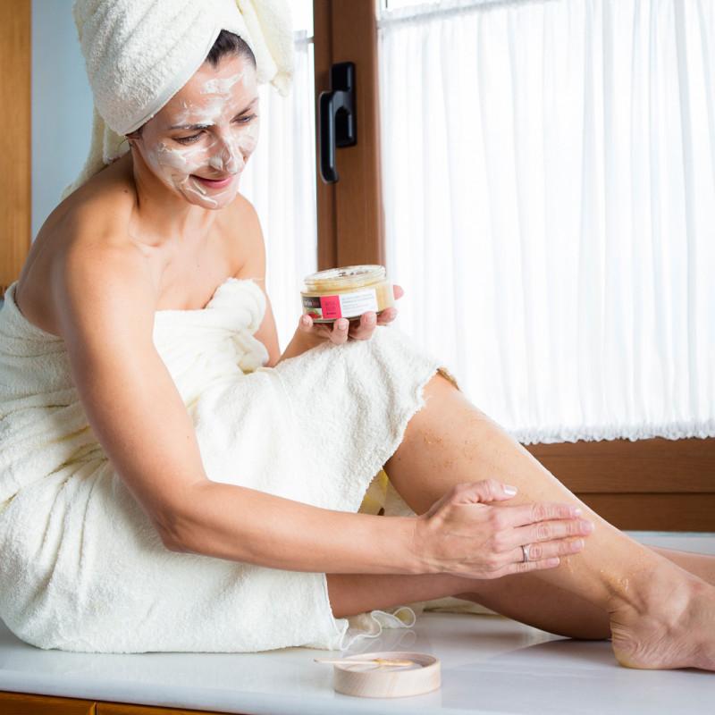 - Aceite de frambuesa, para que a la vez que te exfolias, nutras tu piel. Por su acción antioxidante retrasa el envejecimiento de la piel, disminuye los procesos inflamatorios y protege frente a los cambios climáticos.