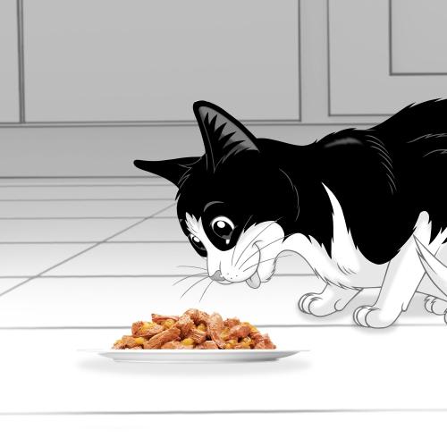 Para un gato adulto medio (4kg) servir de 3 a 4 sobres al día, en al menos 2 comidas separadas.