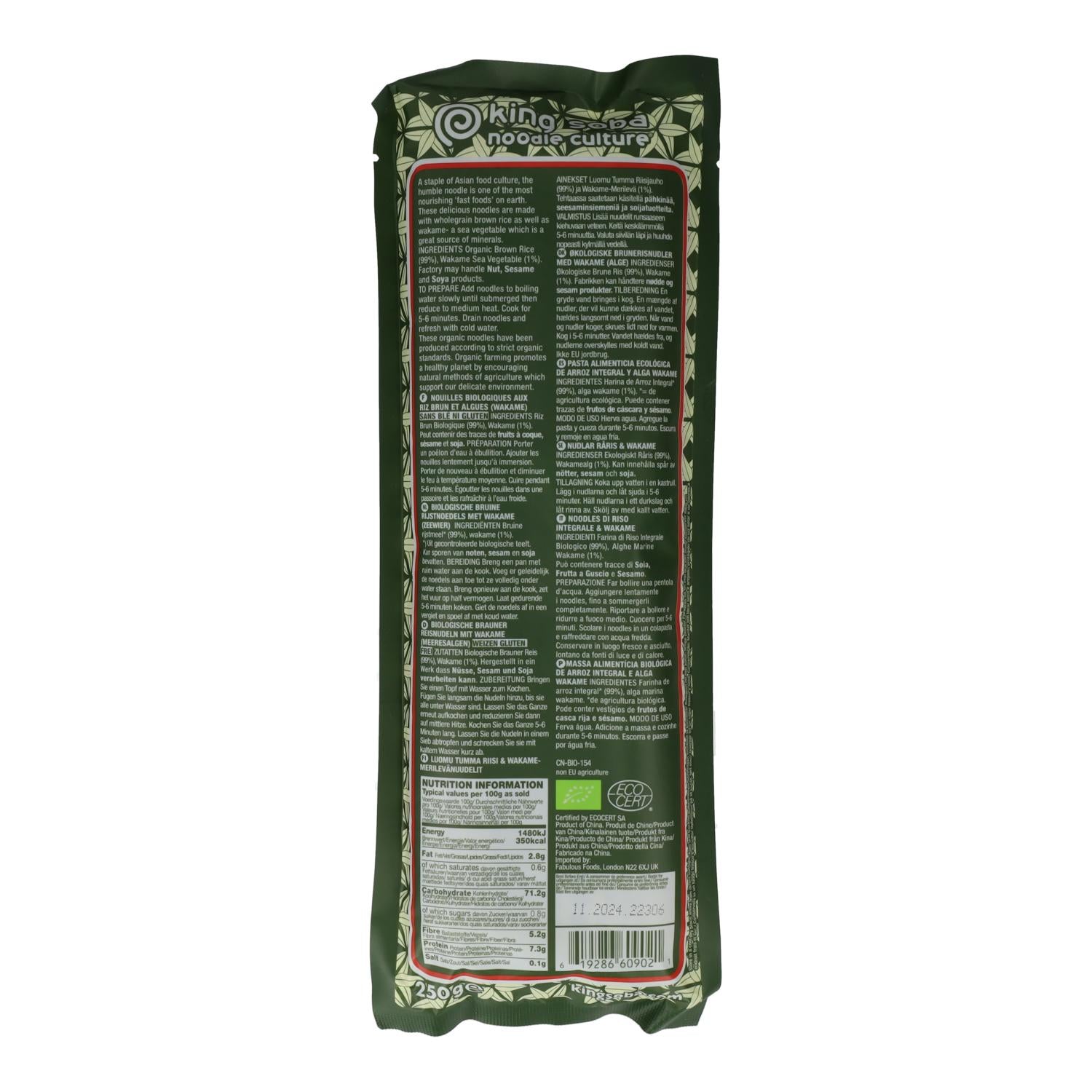 Toda la información sobre "Fideos Noodles de Arroz integral y Alga Wakame King Soba 250 g"