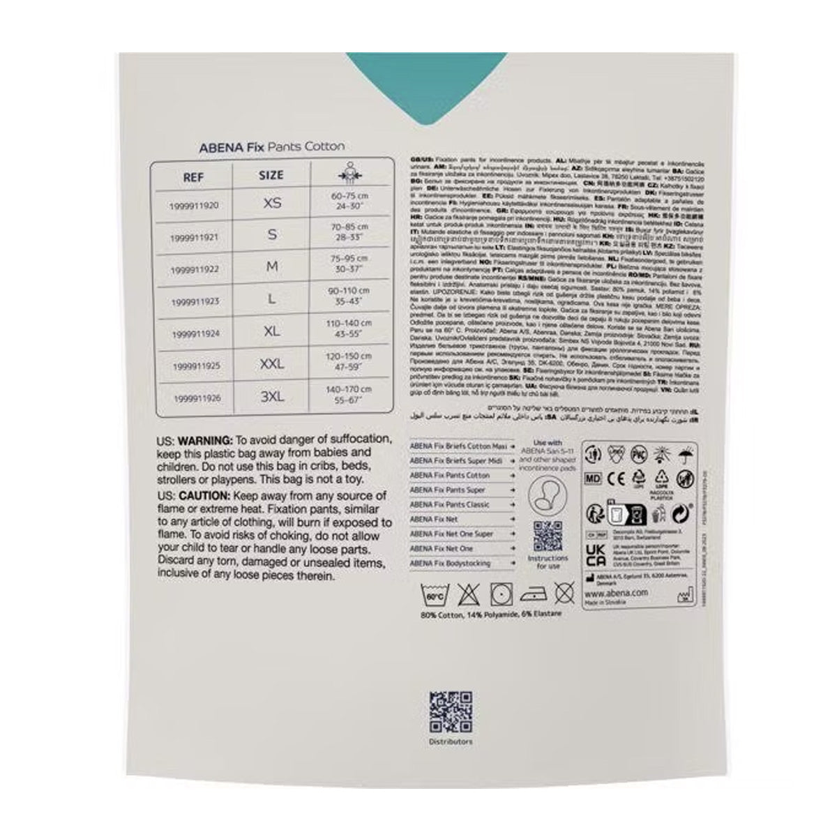 ABENA Fix Pants Cotton es un pantalón de fijación elástico y transpirable con perneras, fabricado principalmente con material de algodón. ABENA Fix Pants Cotton se debe usar como parte de la solución absorbente para incontinencia de 2 piezas, para la fijación de una compresa para incontinencia. Los pantalones de fijación son más anchos en la zona de la entrepierna y más elásticos que la ropa interior normal.