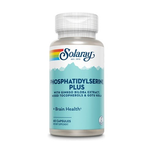 Solaray Phosphatidylserine Plus es un complemento alimenticio formulado para apoyar la función cognitiva, especialmente en lo que respecta a la memoria, la concentración y el aprendizaje. Contiene una combinación de fosfolípidos esenciales y extractos de plantas reconocidos por sus propiedades beneficiosas para el sistema nervioso.