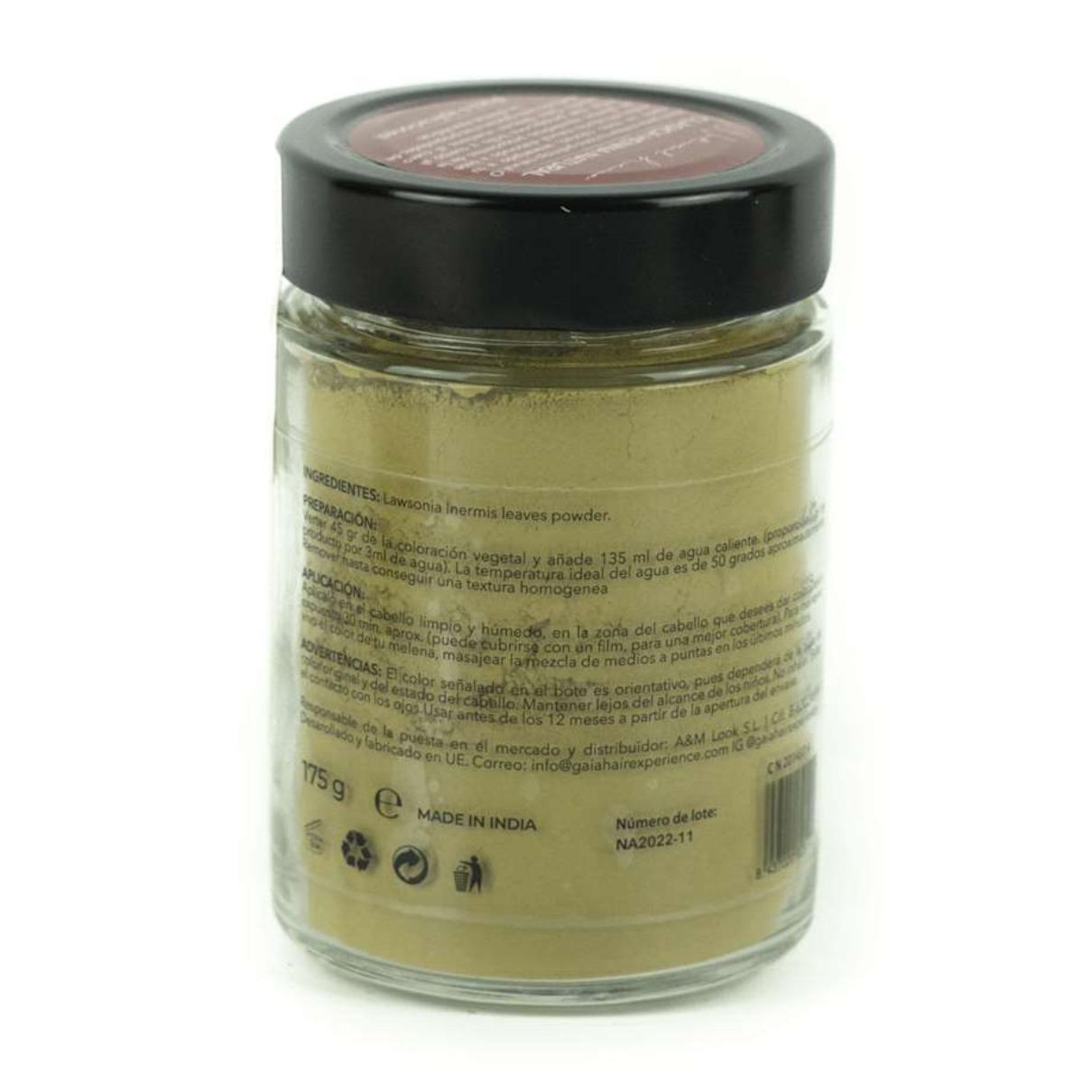 Bote de cristal reutilizable (175 g) con coloración vegetal, henna natural clásica procedente de la India. Color anaranjado / cobrizo. Para cualquier base de color o para conseguir colores más intensos.