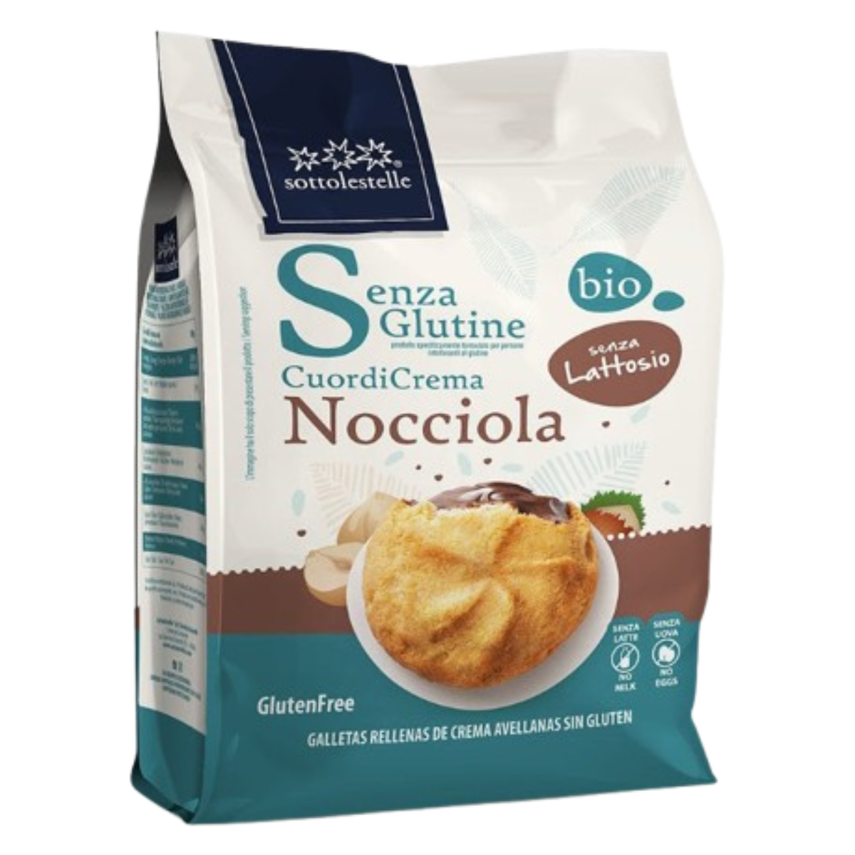 Toda la información sobre "Galleta rellena de crema de avellanas y chocolate sin gluten Sottolestelle 200g"